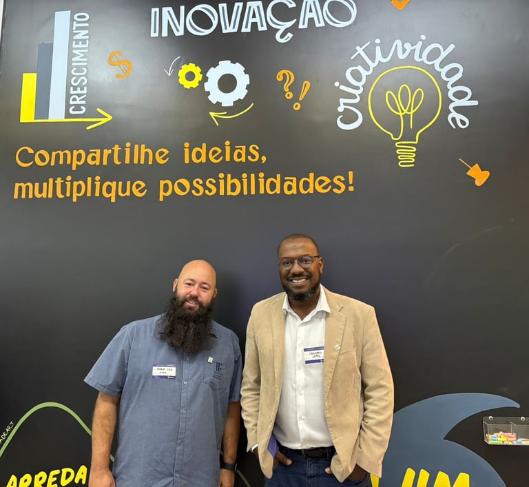 Representando a FAPIFMG, estiveram presentes o Diretor-Presidente, Leandro Antônio da Conceição, e o Diretor Administrativo, Financeiro e de Logística, Robert Luiz Gomes. O encontro também contou com a participação da equipe da Pró-Reitoria de Inovação, Pesquisa e Pós-Graduação (PRIPPG), liderada pela Pró-Reitora Gislayne Elisana Gonçalves, além da presença do Reitor do IFMG, Rafael Bastos. A participação conjunta reforça o compromisso institucional com o fortalecimento das atividades de ensino, pesquisa, extensão e inovação, alinhando-se diretamente aos objetivos do evento, que visam promover debates qualificados sobre inovação, transformação digital e desenvolvimento tecnológico.